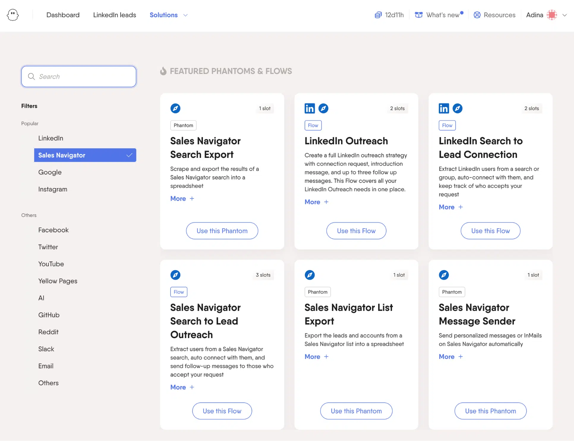 La solution permet d’automatiser des tâches de prospection, de collecte de données et d’engagement sur les réseaux sociaux et plateformes web. Elle s’adresse principalement aux spécialistes du marketing numérique, growth hackers et recruteurs souhaitant accélérer la génération de leads, enrichir des bases de données ou automatiser des actions répétitives.