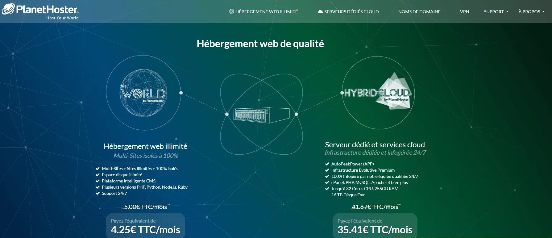 Découvrez PlanetHoster : votre allié en hébergement Web, offrant des solutions sur-mesure pour startups, PMEs et grands groupes. Avec un support client réactif, une fiabilité à toute épreuve et des options de paiement flexibles, PlanetHoster répond aux besoins internationaux avec facilité. Cliquez pour une expérience d’hébergement sans égal.