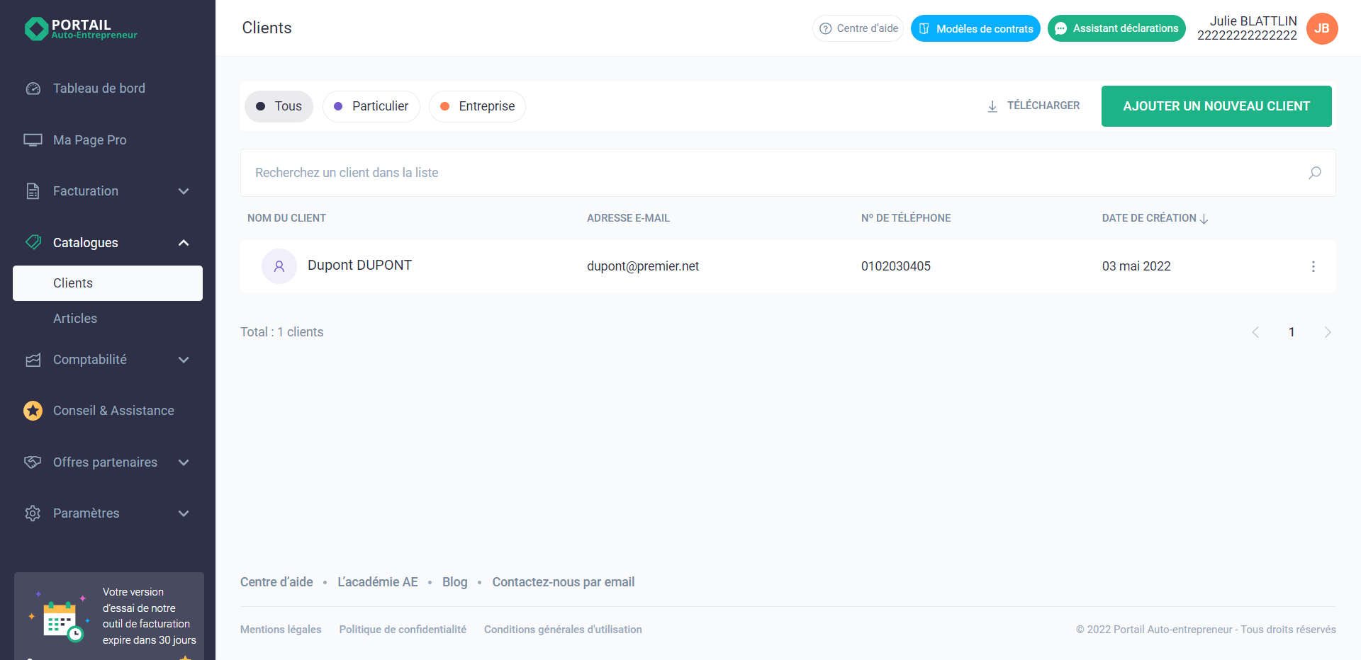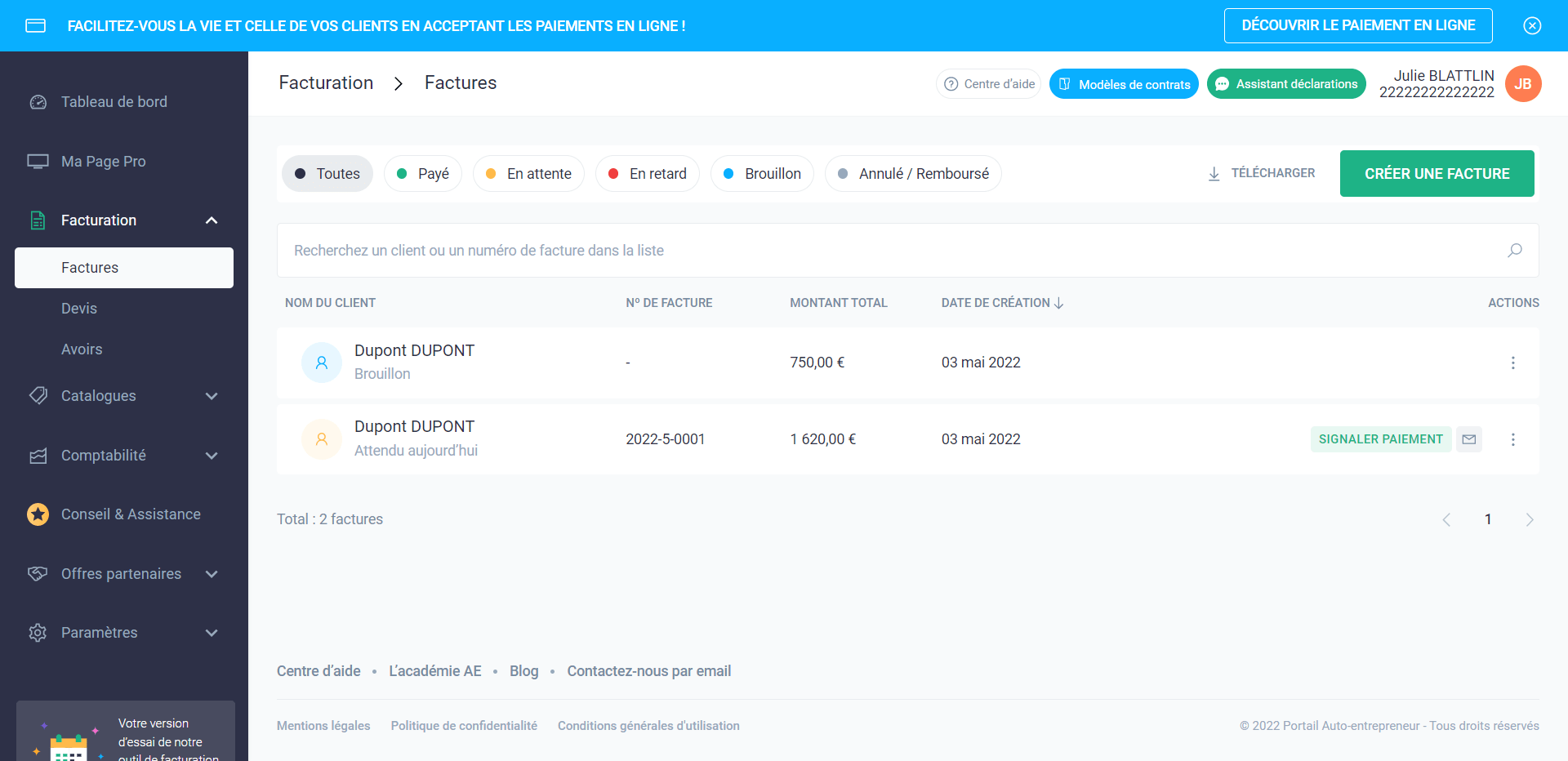L’outil de gestion « Mon Portail » possède toutes les fonctionnalités nécessaires à la gestion d’une micro-entreprise. Il est également très facile à prendre en main. Vous faites facilement vos factures et votre comptabilité en quelques clics.