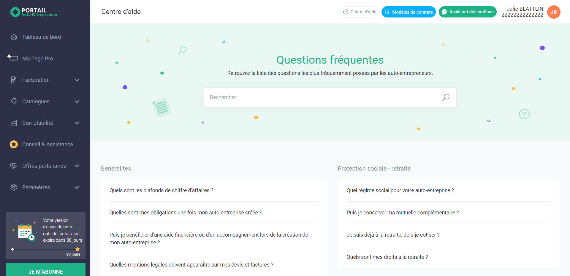 En plus des conseils et de l’accompagnement administratif proposé par les 50 conseillers-experts du Portail Auto-Entrepreneur, la plateforme offre des outils de gestion et des ressources documentaires pour accompagner quotidiennement les entreprises.