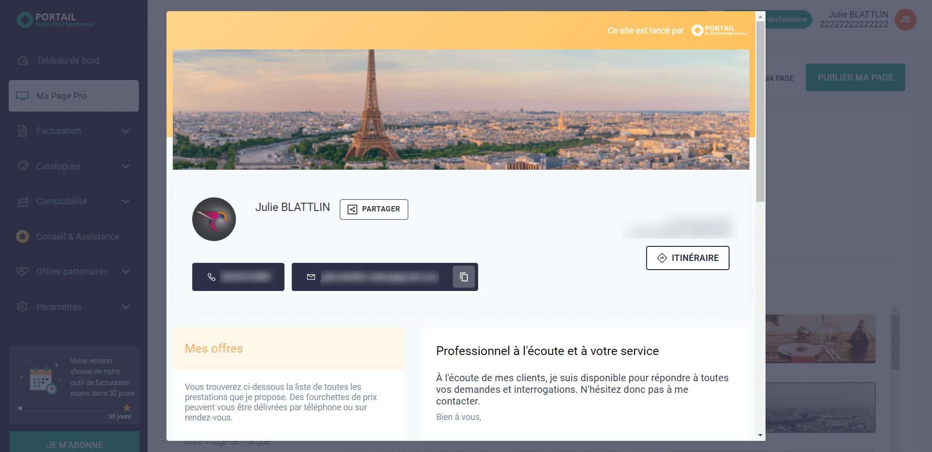 Mon Portail vous permet de créer une page internet professionnelle, dotée de toutes les informations utiles pour vos clients potentiels.