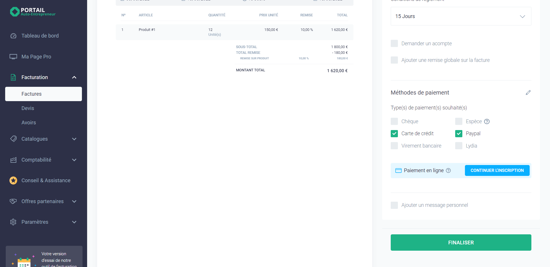 Réalisation facile de factures, devis et avoirs conformes et personnalisables
