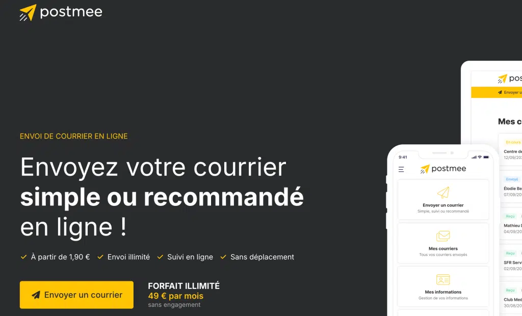 Postmee fonctionne sur abonnement, à 49 € / mois après une période d’essai de 48h à 1,90 €. À ce tarif, vous avez des envois illimités… mais ça reste un prix à envisager si vous ne comptez pas faire plusieurs courriers par mois.