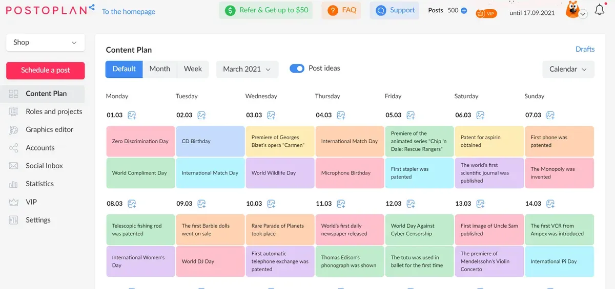 Boostez votre présence en ligne avec Postoplan, l’outil de gestion des réseaux sociaux qui simplifie votre vie. Facile d’utilisation, planification avancée, analyses précises et un soutien client exceptionnel. Pour les start-ups dynamiques et les grandes entreprises, Postoplan est votre allié pour briller sur tous les fronts sociaux. Cliquez pour découvrir comment révolutionner votre stratégie digitale!