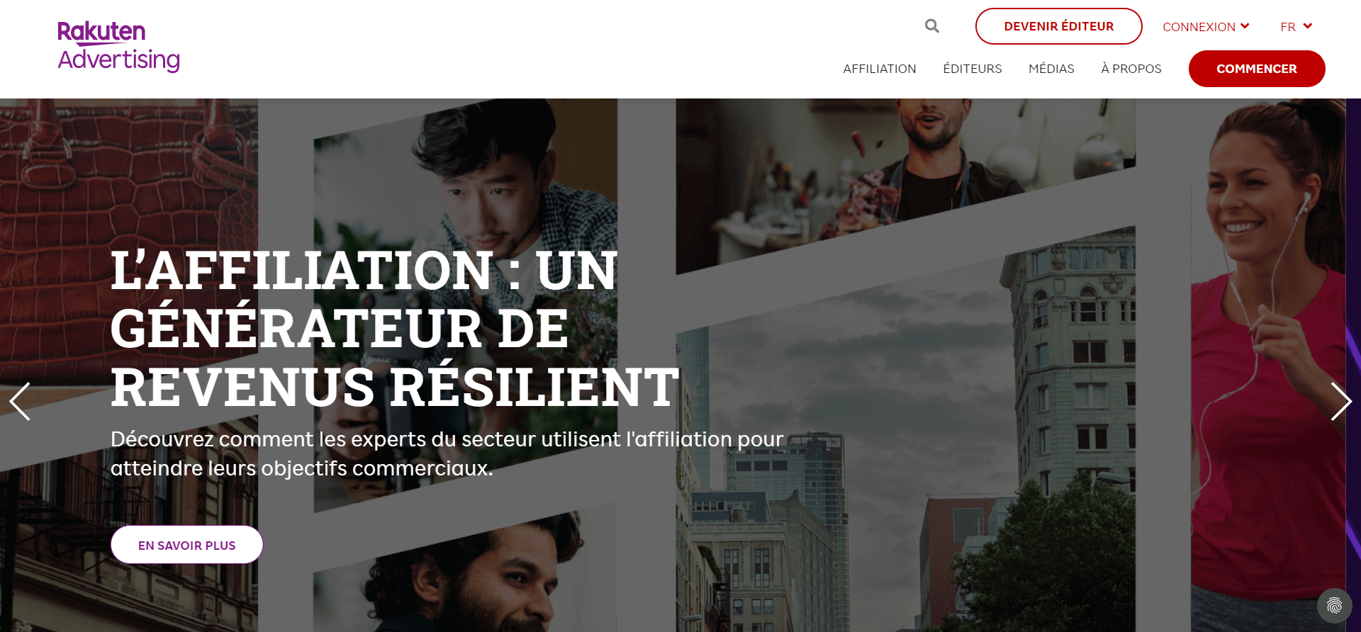 Rakuten est une plateforme d’affiliation historique. Il s’agit d’un réseau mondial qui accompagne les annonceurs vers un haut niveau de performances de leurs campagnes d’affiliation. Les affiliés sont triés sur le volet, afin d’assurer des campagnes qualitatives en termes d’image de marque et de taux de conversion.