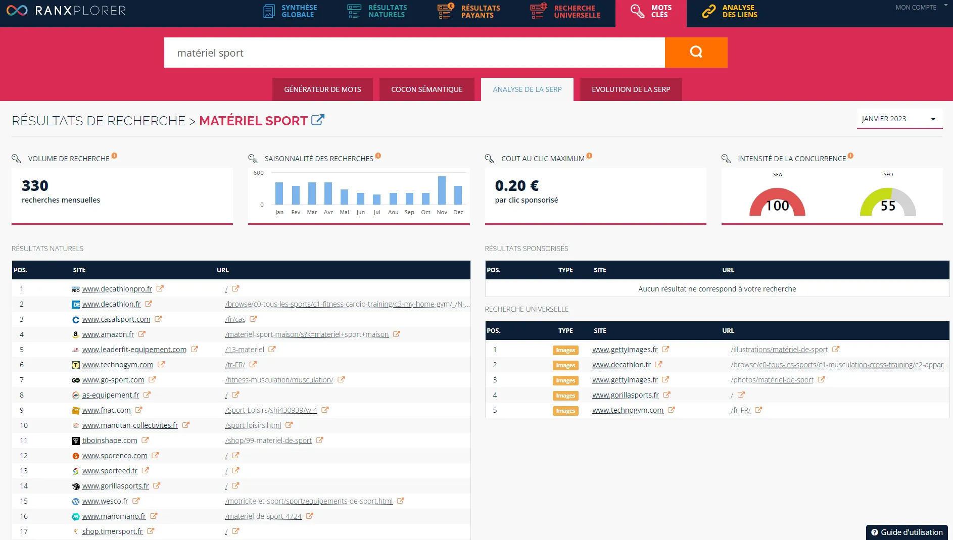 Le logiciel permet d’auditer la présence d’un site sur 3 milliards de résultats de recherche, couvrant 100 millions de mots-clés et 30 millions de sites en France. Il offre une vision claire de la visibilité d’un site par rapport à ses concurrents, en référencement naturel (SEO) comme en référencement payant (SEA). L’outil détecte les opportunités à court et moyen terme pour améliorer la performance sur Google.