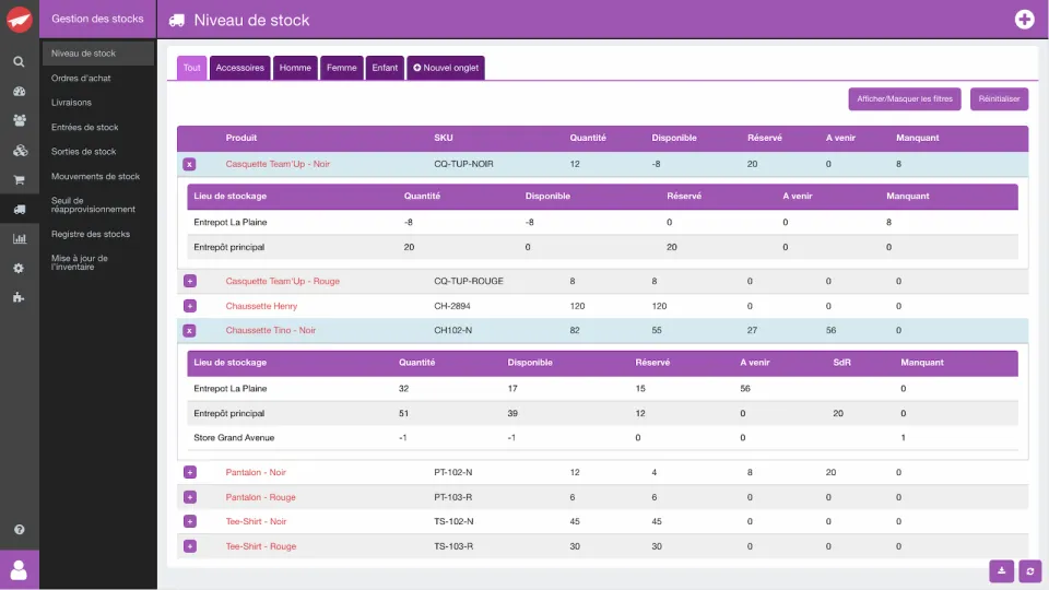 - Système de gestion d’entrepôt (WMS) : Pilotage des opérations de réception, stockage, préparation de commandes, expédition et retours.