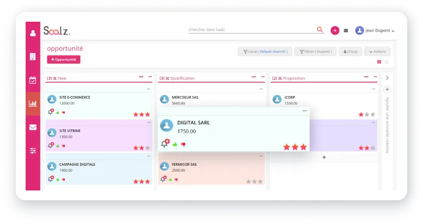 Découvrez Saalz, le CRM qui révolutionne la gestion client pour startups, PME et grands groupes. Avec une gestion de contacts intuitive, automatisation des tâches, intégration facile, analyse de données précise, et un support client exceptionnel, Saalz est l’outil idéal pour booster votre relation client. Cliquez pour transformer votre gestion clientèle.