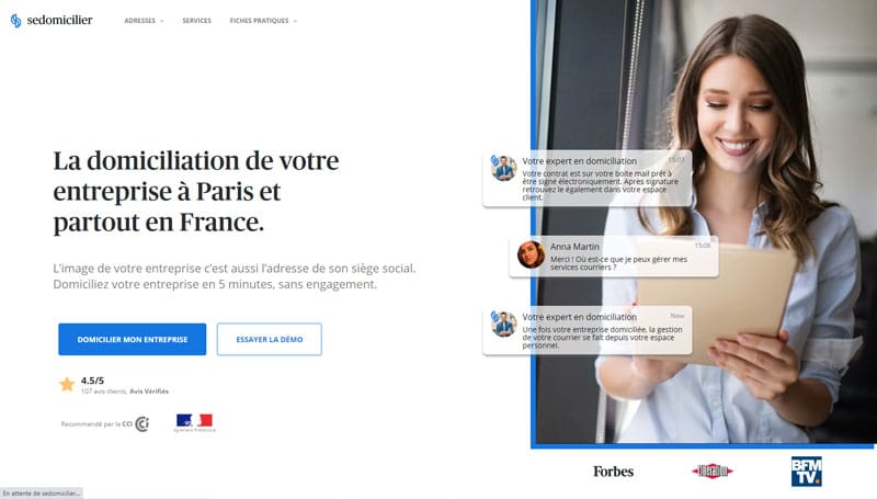 Solution 100% en ligne permettant d’obtenir un contrat de domiciliation en moins de 4 heures, à partir de 16€/mois. Plus de 80 adresses disponibles partout en France, dont 13 à Paris, 15 en Île-de-France, 3 à Lyon, 3 à Toulouse, 1 à Lille et 4 à Bordeaux.
