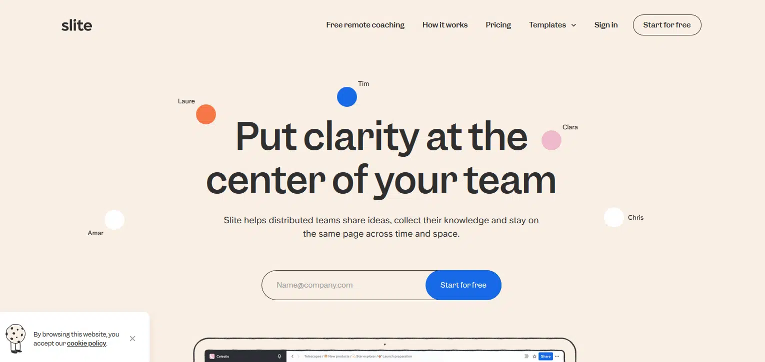 - Centralisation de l’information : Slite vous permet de rassembler toutes vos notes, documents et discussions d’équipe dans un seul endroit, accessible à tout moment, depuis n’importe quel appareil.