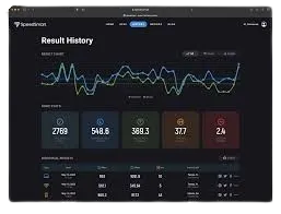 - Historique détaillé des résultats avec listes, graphiques et statistiques pour suivre l’évolution de la connexion dans le temps ou sur plusieurs appareils.