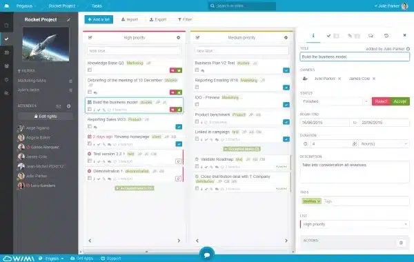 Les utilisateurs apprécient particulièrement la vue d’ensemble que Wimi offre sur les projets. Vous pouvez rapidement avoir un aperçu du statut des tâches, des échéances à venir, et des priorités, le tout sans quitter la plateforme.