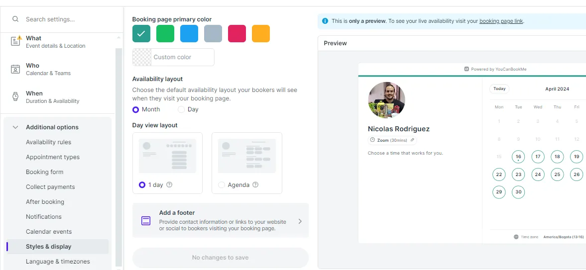 La solution offre des options de personnalisation poussées pour garantir une expérience de réservation cohérente avec l’image de marque de l’entreprise. Il est possible d’ajouter un logo, de choisir les couleurs, d’intégrer une image de fond et de personnaliser le pied de page. Les pages de réservation peuvent être partagées sur les réseaux sociaux, intégrées au site web, dans la signature d’email ou utilisées lors de rendez-vous en personne.