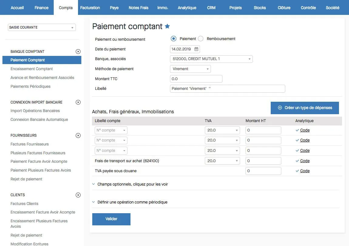 EBP Compta se décline sous plusieurs versions différentes, afin de répondre aux besoins des différents profils d’entreprises. Il permet d’intégrer automatiquement les écritures comptables issues de vos solutions de gestion commerciale, de paie et de trésorerie, qu’il s’agisse de solutions éditées par EBP ou non. Vous pouvez éditer vos états coomptables et gérer un prévisionnel…
