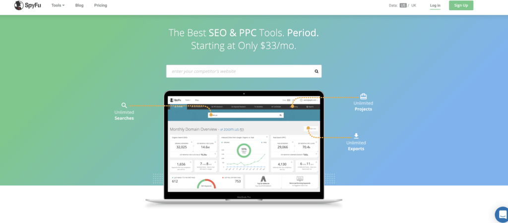 Cela étant dit, SpyFu manque un peu de fonctionnalités pour analyser votre propre site, mais il est nettement plus abordable que Semrush à seulement 33 $/mois, soit un tiers du prix de Semrush.