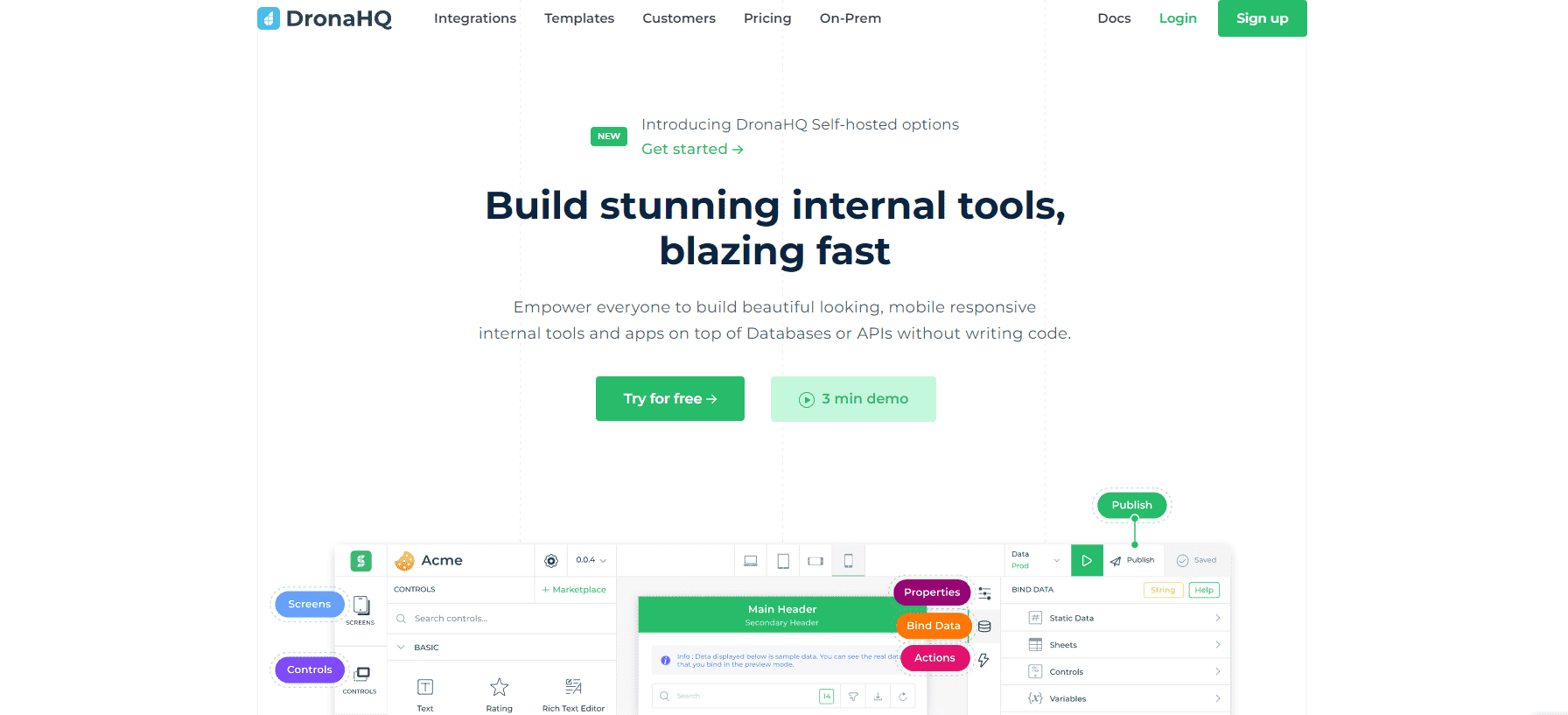DronaHQ est une plate-forme low-code utilisée pour la création rapide et le déploiement d’applications pour tous les appareils de destination (ordinateurs, tablettes ou smartphones).