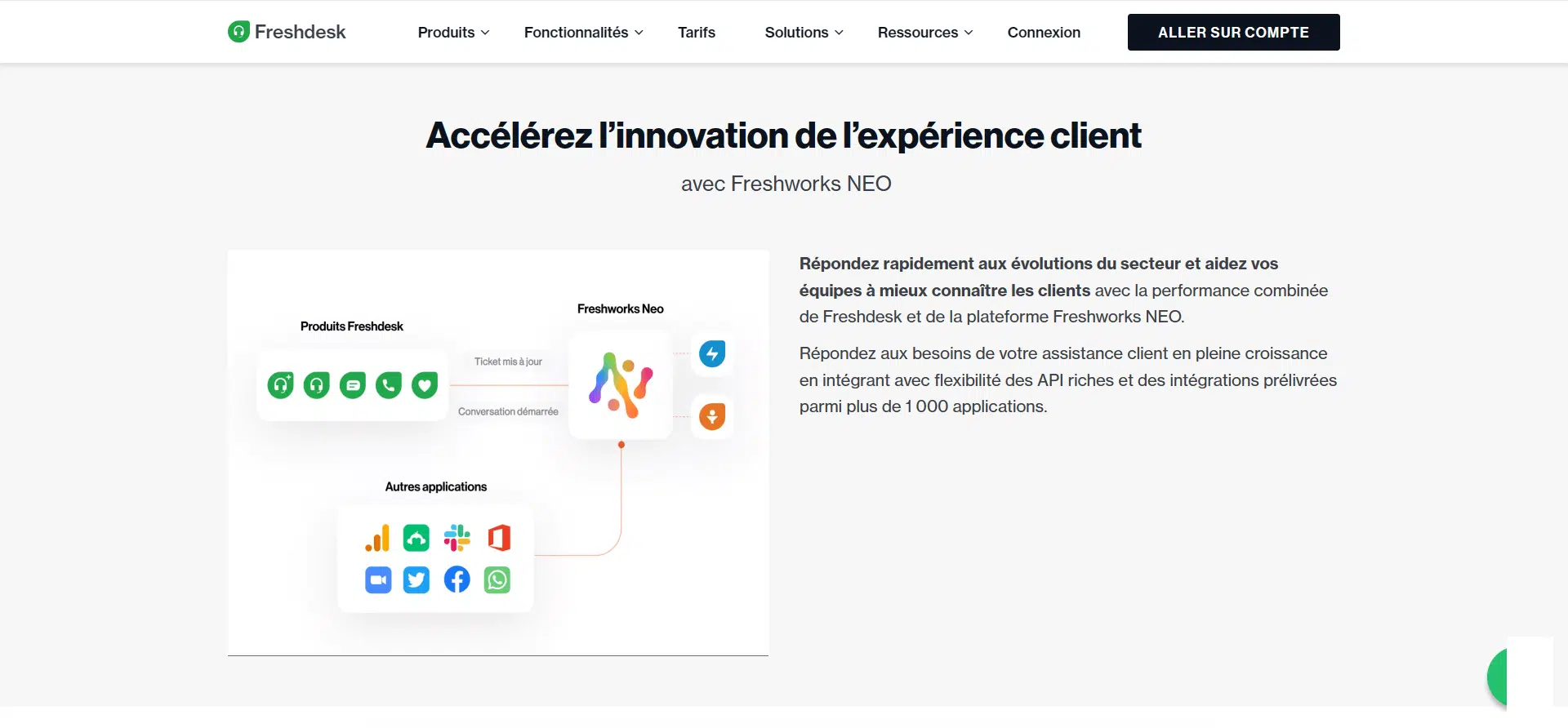 Intégration avec d’autres produits Freshworks : Freshdesk peut être facilement intégré avec d’autres produits de la suite Freshworks, comme Freshsales et Freshchat, pour une expérience client unifiée.