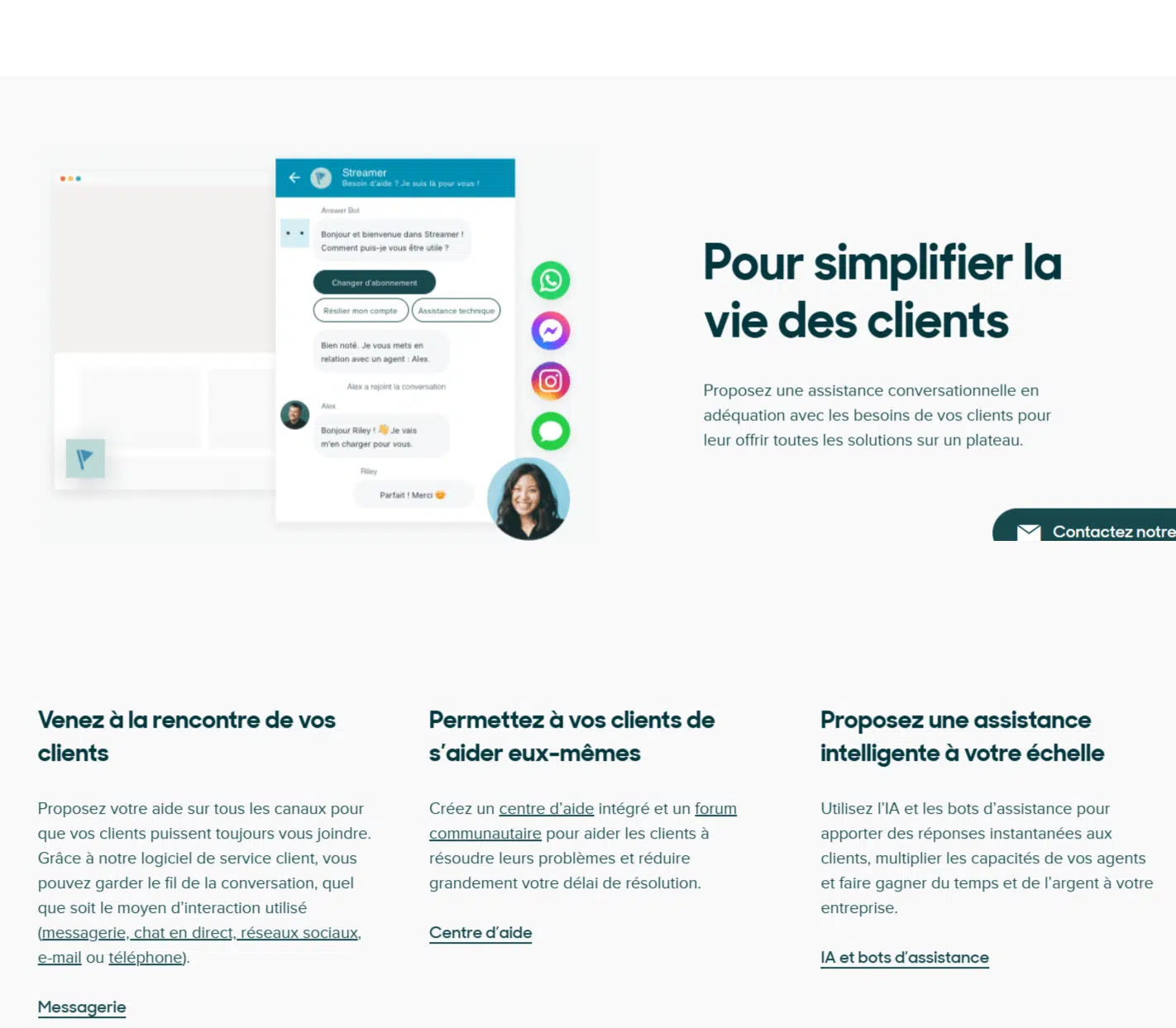 Assistance par e-mail, voix, SMS et chat en direct