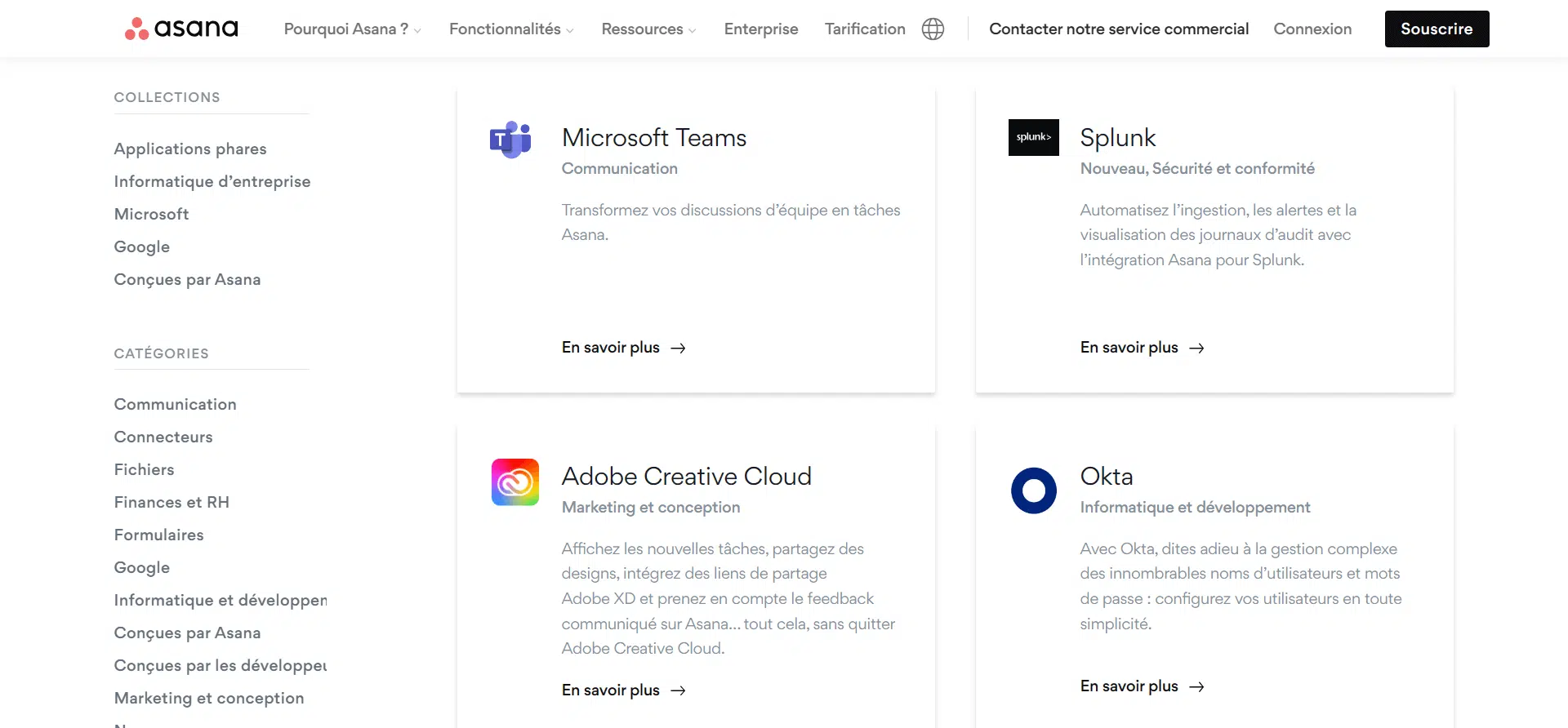 Asana spossède un vaste catalogue d’intégrations avec de nombreux logiciels et services, tels que Google Drive, Slack, Trello, Salesforce, et bien d’autres encore. Son API ouverte permet également de créer des intégrations personnalisées pour répondre aux besoins spécifiques des utilisateurs.