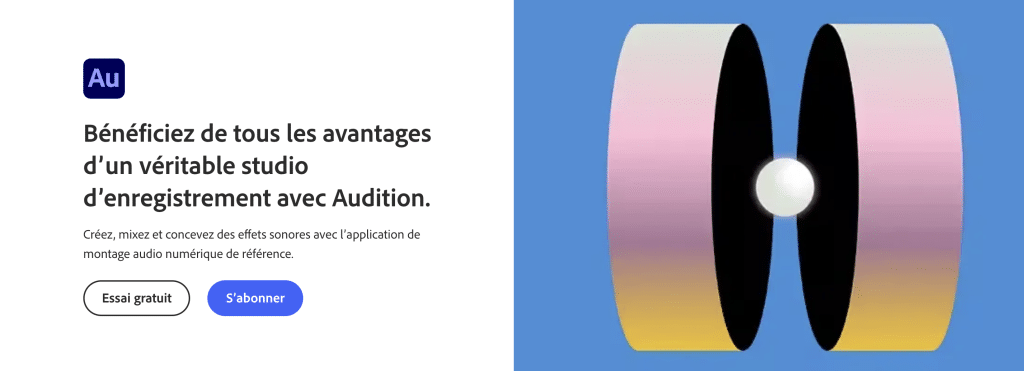 Adobe audition est un logiciel de la suite Creative Cloud. Il offre tout un panel de fonctionnalités avancées dans une interface intuitive. Outre l’enregistrement, le montage, les réglages des niveaux audio et des effets sonores, il propose des options professionnelles. Il peut notamment être intégré à Adobe Première Pro et permet la collaboration avec Frame.io.