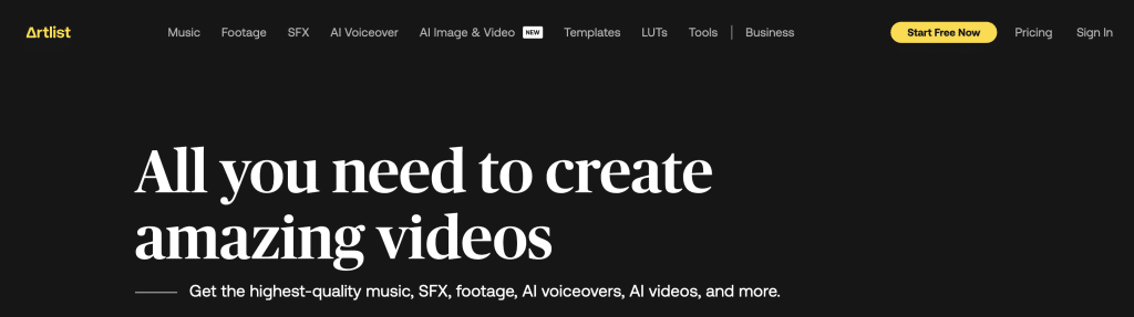 Artlist est un site qui met à disposition de nombreux sons pour les vidéos. Vous y trouverez des morceaux, des séquences, des effets sonores, un générateur de voix off avec IA. La bibliothèque est dotée de nombreux filtres pour trouver le son idéal. Le site offre aussi des vidéos libres de droits, des templates de montage et des images. Le tout avec une qualité studio.