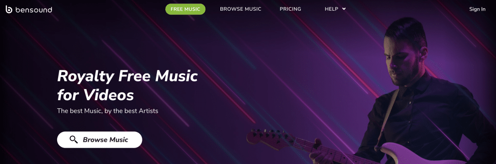 | Bensound | Pour les projets vidéo simples sur les réseaux sociaux | Gratuit, mais avec des options payantes adaptées aux besoins des professionnels | Creative Commons / licence pro | Bibliothèque de musique gratuite + abonnement de 9,99 € et 39,99 € |