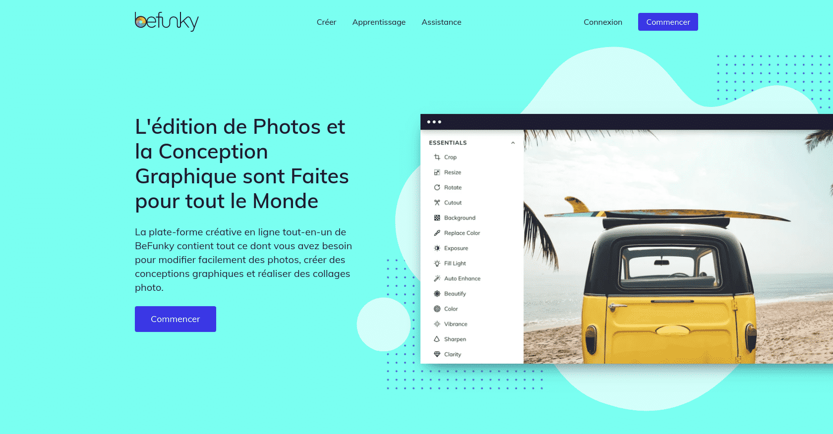 Même s’il existe une version Pro, la large gamme de fonctionnalités de BeFunky est aussi disponible gratuitement. BeFunky est un éditeur de photos puissant, mais facile à utiliser. Sa plateforme en ligne tout-en-un propose des centaines de modèles entièrement personnalisables, une vaste bibliothèque d’outils et des éléments de conception époustouflants parmi lesquels choisir. Pour les retouches sur le pouce, BeFunky propose un éditeur de photos mobile intuitif pour iOS et Android.