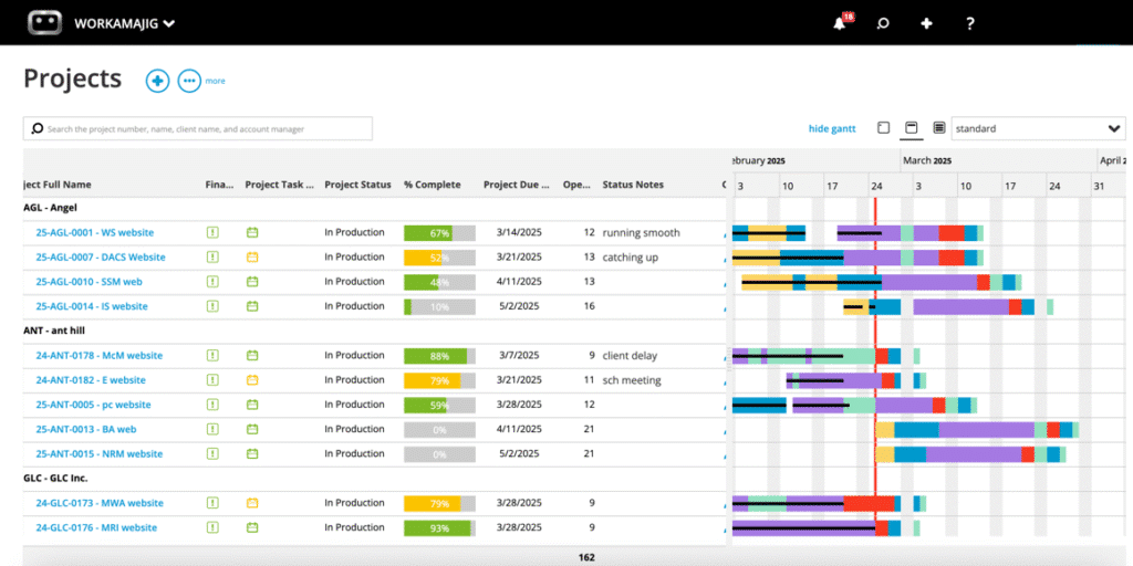 Suivi des tâches jour par jour, visibilité sur l’avancement, affectation des ressources en un clic : Workamajig offre une vue ultra complète, pensée pour les agences créatives qui gèrent plusieurs projets en parallèle, avec des enjeux de rentabilité précis. Découvrez notre avis sur Workamajig.