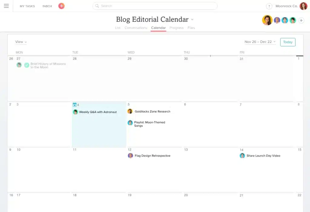- Outils de communication intégrés permettant de commenter directement les tâches du projet, d’engager des conversations sur des pages d’équipe dédiées, etc.