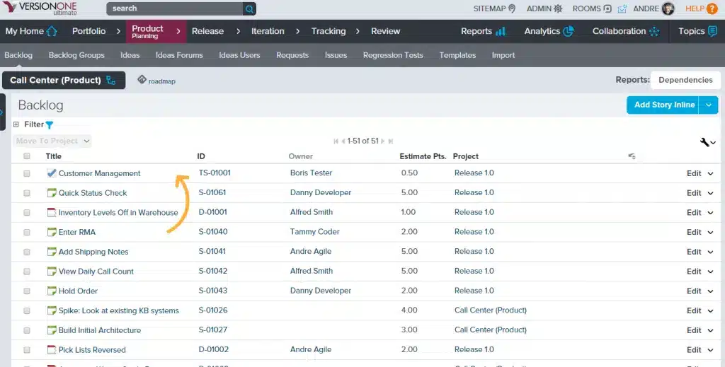 - VersionOne vous permet d’utiliser des tableaux Kanban et permet aux acteurs du projet de voir l’ensemble du travail, y compris des idées, des récits et des tâches spécifiques.