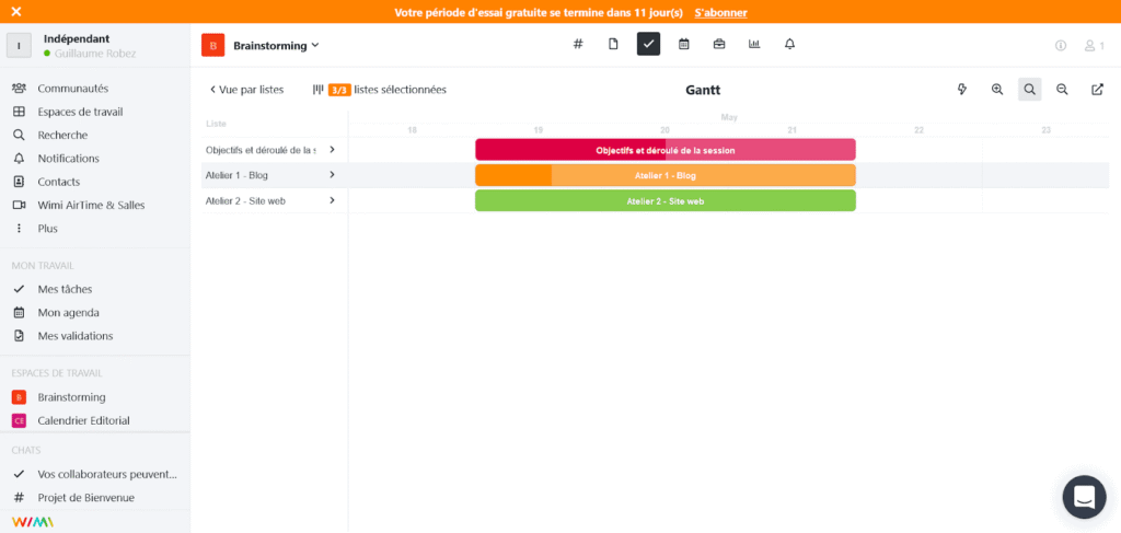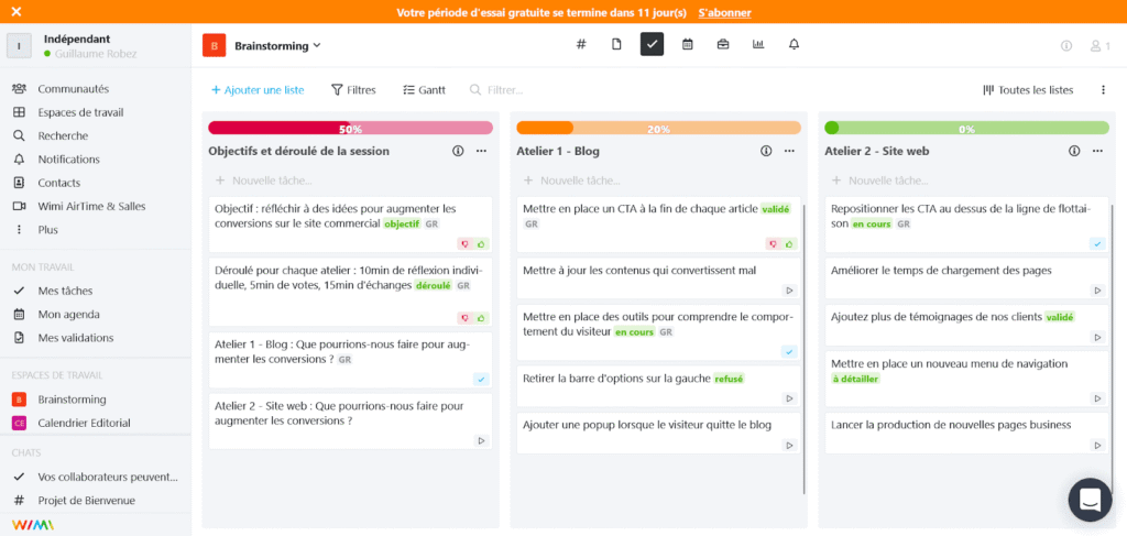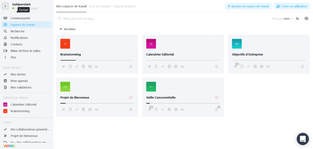 Wimi propose une plateforme simple avec gestion de projet, GED, visioconférence intégrée — pensée pour les équipes mixtes (terrain, bureau, partenaires). Découvrez notre avis sur Wimi.