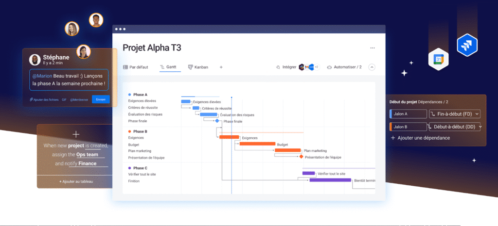 Ces solutions vont plus loin. Elles permettent de piloter plusieurs projets, suivre la charge, automatiser les tâches répétitives, connecter vos outils existants.