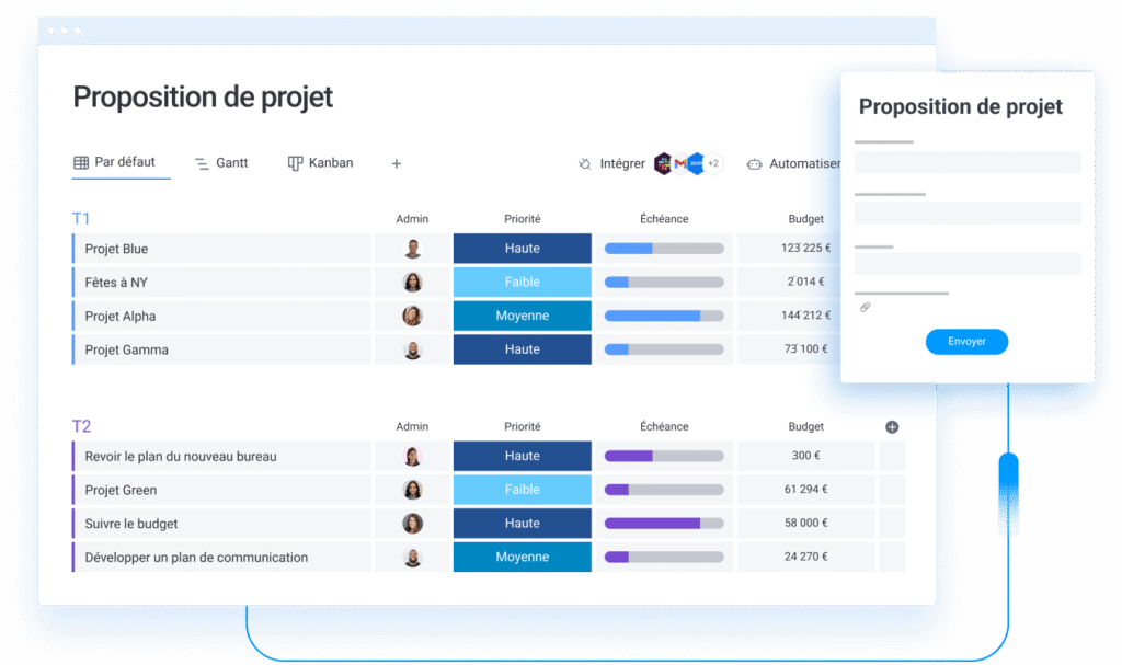 Un tableau Kanban pour visualiser, un mode liste pour trier, un Gantt pour planifier. Le tout sans menus planqués, sans jargon de développeur, sans clics inutiles.