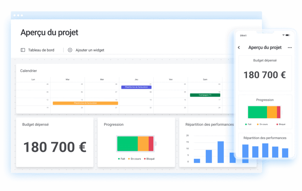 Par exemple, Monday permet de suivre à la fois les projets, les délais, les campagnes marketing, les bugs techniques, les relances clients — dans un seul espace partagé. Découvrez notre avis sur Monday