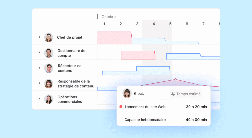 Sans une vue sur qui fait quoi et quand, vous naviguez à l’aveugle. Certains outils proposent une vue charge ou timeline… d’autres non. Pour répartir la charge efficacement, visez un outil avec Gantt ou vue “workload”.