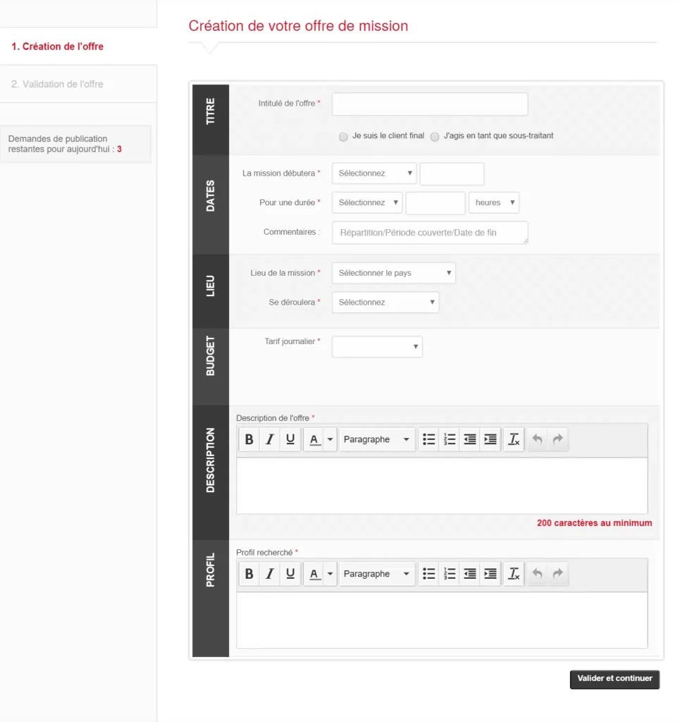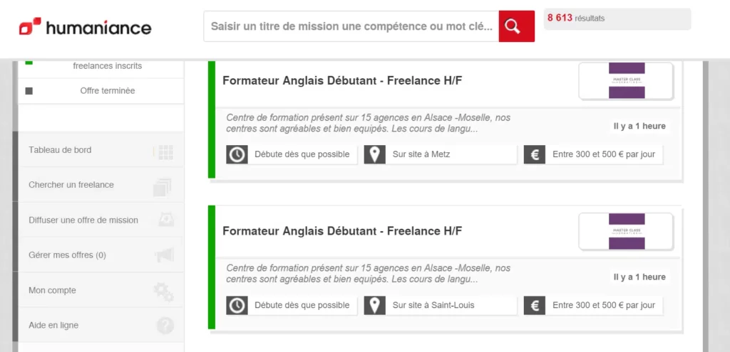 Humaniance fonctionne suivant le deuxième modèle. Vous devez commencer par créer un compte recruteur. Vous pouvez ensuite créer et publier vos appels d’offres. C’est payant : 39 euros par mois (sans engagement).