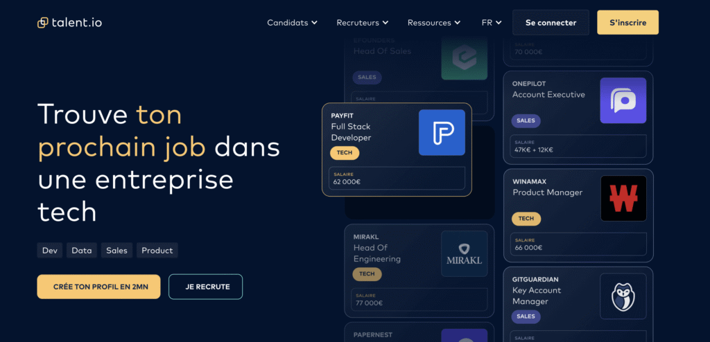 Spécialisée dans les recrutements technologiques, Talent.io est une plateforme à croissance rapide en Europe, simplifiant grandement le processus d’embauche pour les entreprises. Chaque semaine, seules 10 % des 2000 candidats inscrits sont sélectionnés sur la base de leurs compétences et de leur disponibilité. Les entreprises reçoivent ainsi directement une sélection rigoureuse d’environ 100 candidats triés sur le volet, principalement des développeurs web, ingénieurs, experts data et CTOs, leur permettant ainsi de gagner un temps précieux dans le recrutement.
