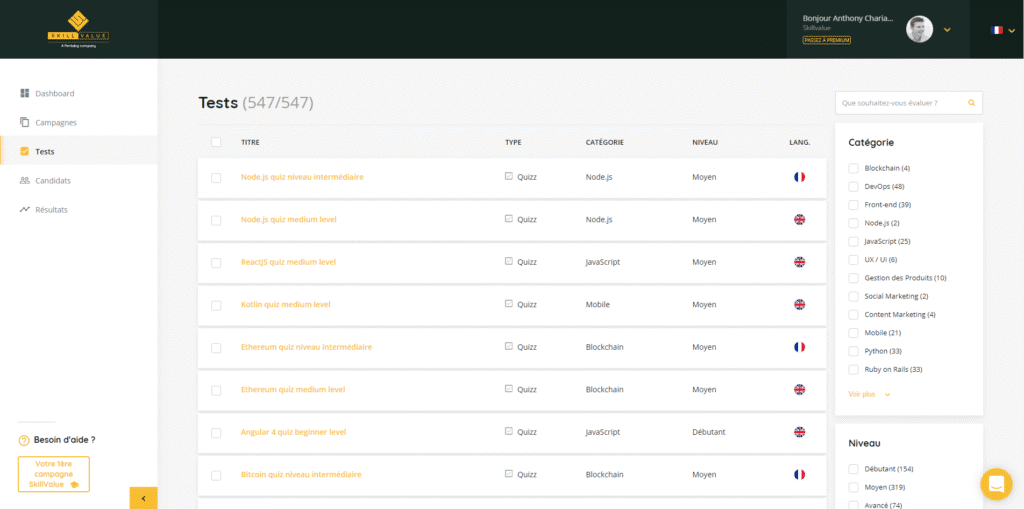 Appartenant au groupe Pentalog, SkillValue est une plateforme orientée croissance rapide, particulièrement adaptée aux startups et éditeurs de logiciels. La plateforme propose plus de 10 000 profils spécialisés, tels que développeurs full-stack, développeurs C++, architectes IT ou développeurs backend, avec des compétences techniques validées par la plateforme elle-même.