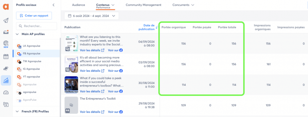 | Notoriété et Portée | Impressions, portée organique, portée payante | Facebook Insights, Twitter Analytics | Suivre la visibilité globale de vos contenus. |
