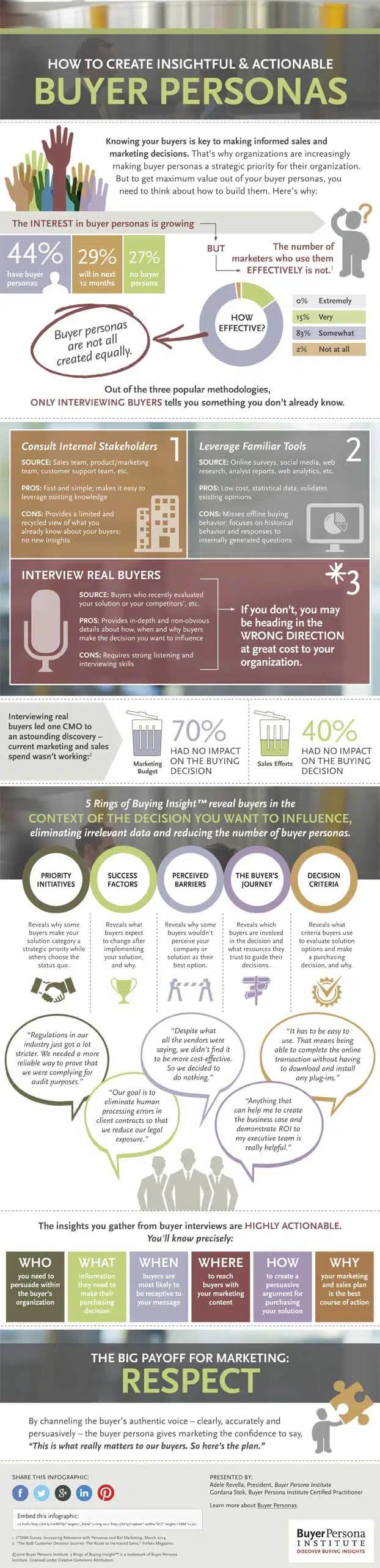 Si vous connaissez vraiment vos acheteurs, vous serez en mesure de répondre oui à chacun des énoncés ci-dessus en toute confiance. Obtenir cela nécessite de mener des entretiens de recherche avec les acheteurs. Rassembler les données nécessaires pour développer votre «buyer persona». En utilisant leurs mots, cela révèlent les attitudes, les préoccupations et les critères de décision que vous devez aborder pour gagner leur confiance. Un buyer persona révèle :