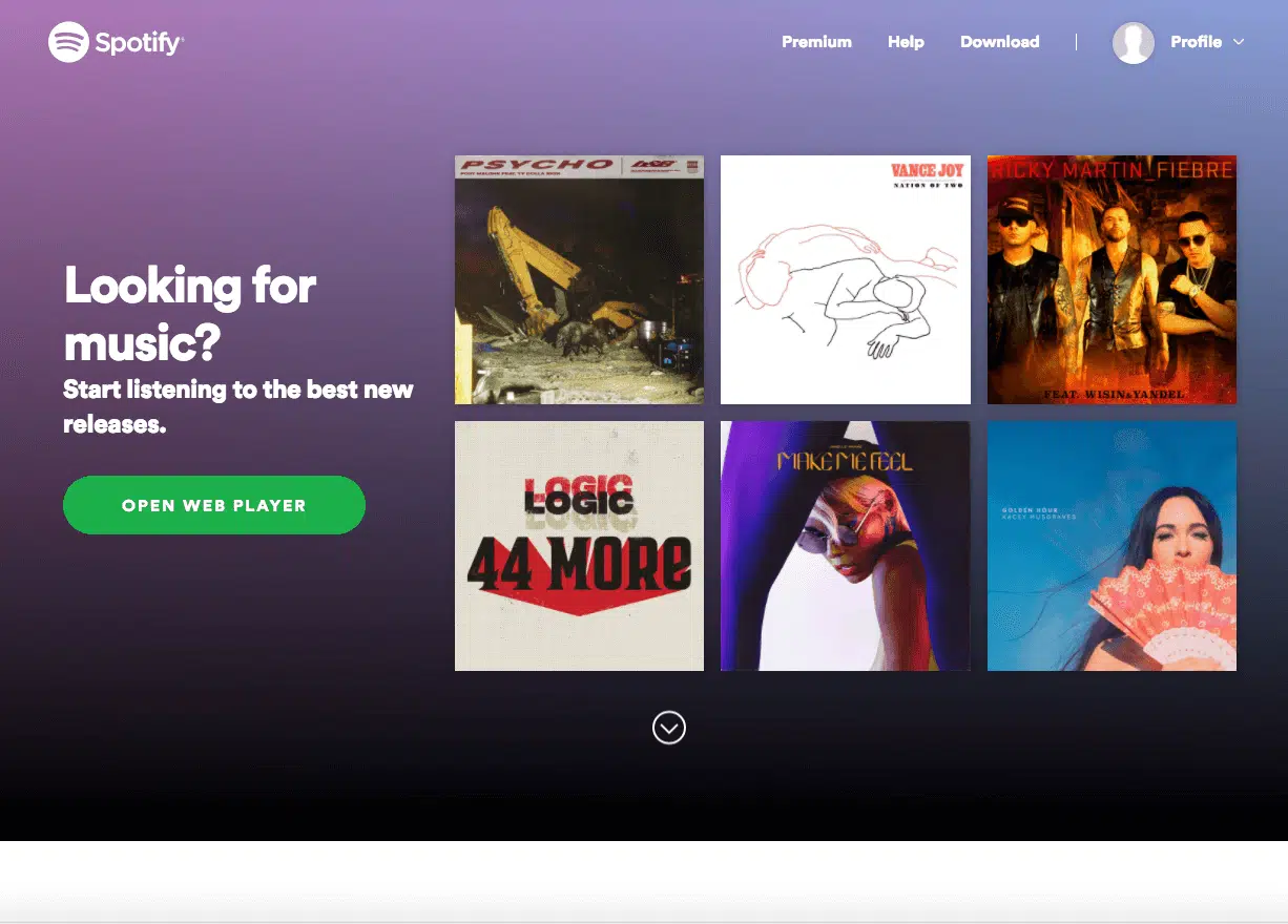 Quel est le problème avec la plupart des sites web ? C’est qu’ils offrent la même expérience page après page à tous les visiteurs. Au lieu de cela, un site web Inbound Marketing utilise les données disponibles pour offrir une expérience personnalisée. Les données sont collectées via les interactions des visiteurs avec votre site. Offrez une expérience plus attrayante avec des appels à l’action personnalisés. Personnalisation basée sur la façon dont ils interagissent avec le contenu ainsi que leurs intérêts et leurs besoins. Ce type d’engagement est connu sous le nom de «marketing contextuel». Le marketing contextuel prend en compte les besoins, les habitudes et les objectifs des utilisateurs. Il crée une expérience sur site personnalisée. Fournir une expérience utilisateur optimale et proposer le bon contenu à la bonne personne, au bon moment, est devenu un standard attendu par les consommateurs, qui plébiscitent la personnalisation. Voici un exemple de la façon dont Spotify utilise le marketing contextuel, lorsque vous n’est pas connecté à Spotify :