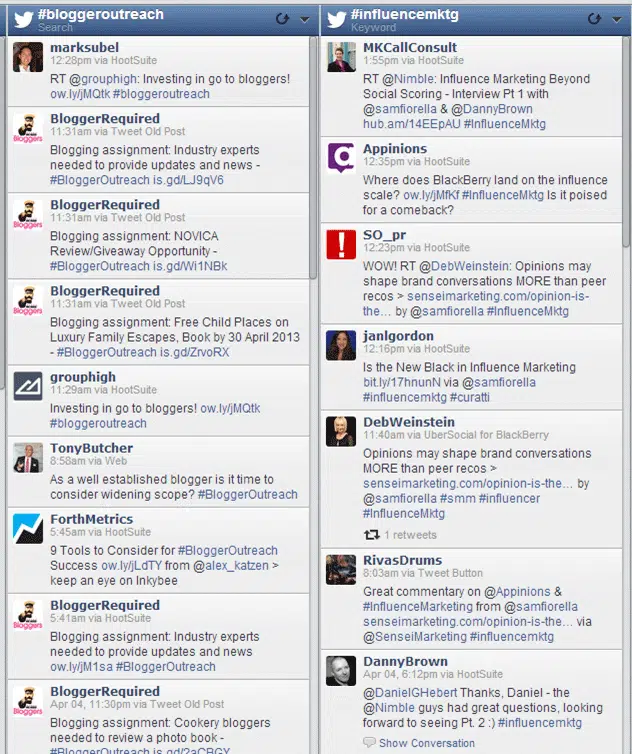 Nous vous conseillons aussi d’utiliser un outil comme HootSuite ou TweetDesk pour organiser votre veille de manière plus efficace et gagner du temps. Ces outils permettent de suivre sur une même interface l’actualité sur les différents hashtags ciblés.