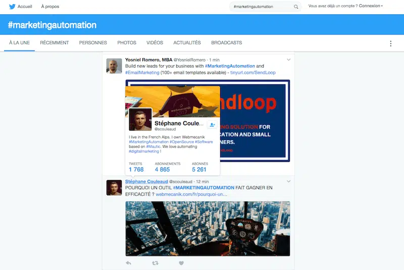 Si vous recherchez des influenceurs dans le secteur du marketing digital, nous vous recommandons cet article de Synthesio (liste de 30 comptes Twitter à suivre).