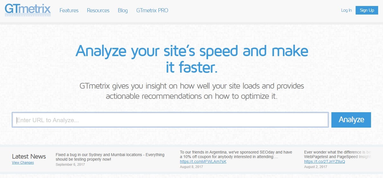 La gestion de la vitesse de chargement des pages de votre site peut avoir un impact majeur sur le référencement, ainsi que sur l’UX. GTMetrix est un outil permettant d’examiner la vitesse de chargement d’une page et de diagnostiquer les opportunités d’amélioration afin de savoir comment vous pouvez affiner votre site. De nombreux autres outils existent afin de mesurer la vitesse de chargement des pages. Cependant GTMetrix est bien l’un de nos favoris. Complet et très facile d’utilisation, vous n’allez pas être déçu. Autres outils que vous pourriez trouver utiles: Pingdom et Google PageSpeed Insights.
