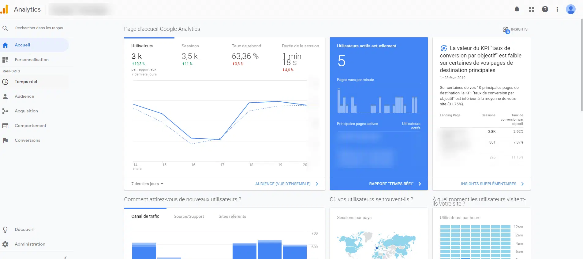 Il y a des chances que vous ayez déjà installé Google Analytics sur votre site web. Sinon, vous devez absolument le faire. Ne serait-ce que parce la plupart des agences web ont besoin de comprendre l’activité sur votre site au cours des 30 derniers jours Google Analytics est gratuit et facile à installer. Il permet de savoir combien de personnes visitent chaque page, quel est le trafic global sur votre site web, comment les visiteurs se comportent sur votre site, sur quelles pages le taux de rebond est le plus important, etc. GA est une mine d’or.