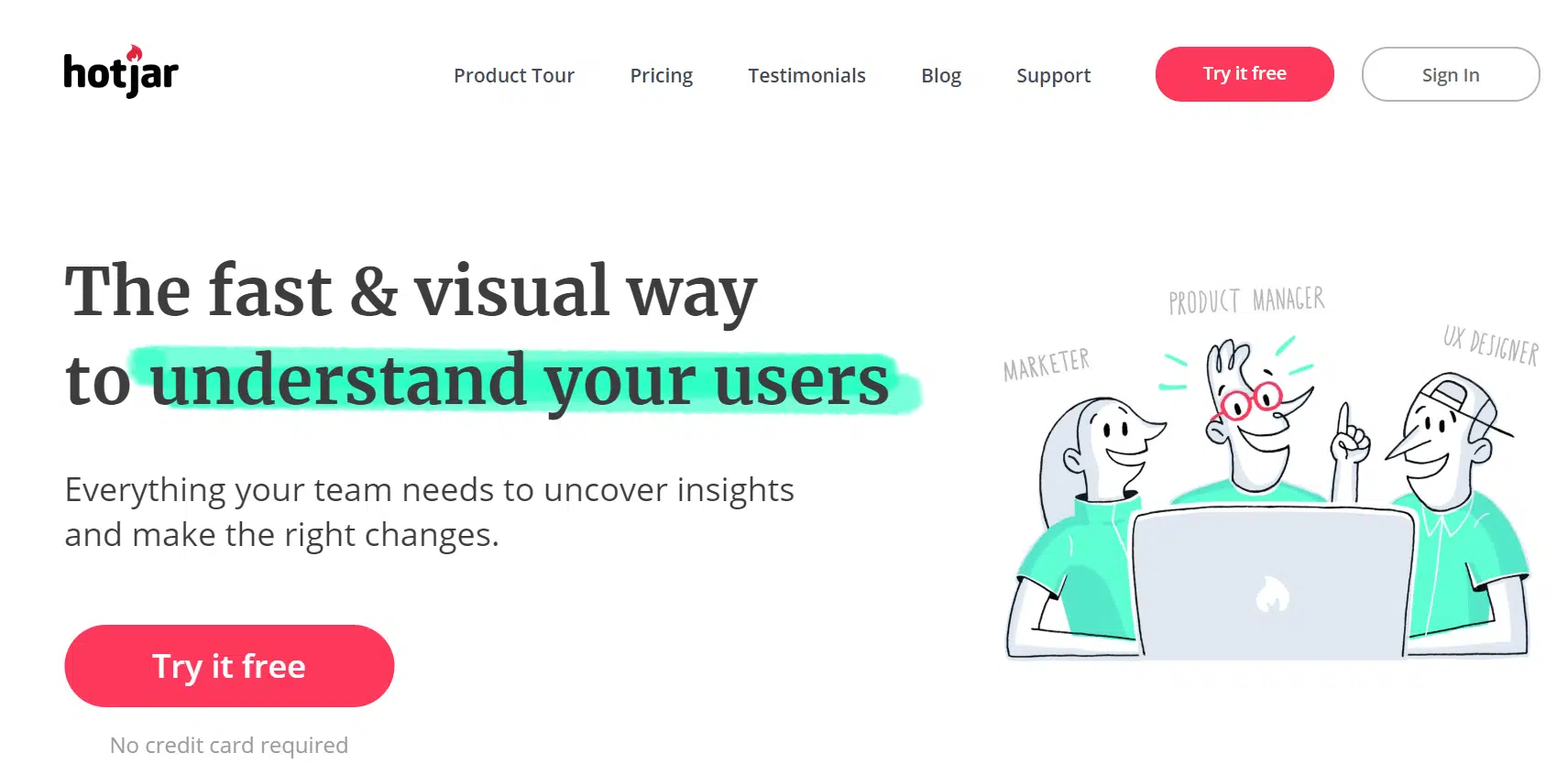 Hotjar est un outil de heat-mapping (cartes de chaleur) qui permet de voir où vos visiteurs cliquent sur la page, jusqu’où ils scrollent chaque page, quelles parties de la page ils regardent le plus. Il est même possible de tracker les mouvements de souris de vos visiteurs sur vos pages ! Vous pouvez utiliser ces informations sur la manière dont les gens réagissent au design de votre site pour mieux comprendre le parcours d’achat de vos visiteurs et identifier des axes d’amélioration pour le nouveau site. Gratuit, Hotjar permet de visualiser facilement comment vos visiteurs utilisent votre site web.