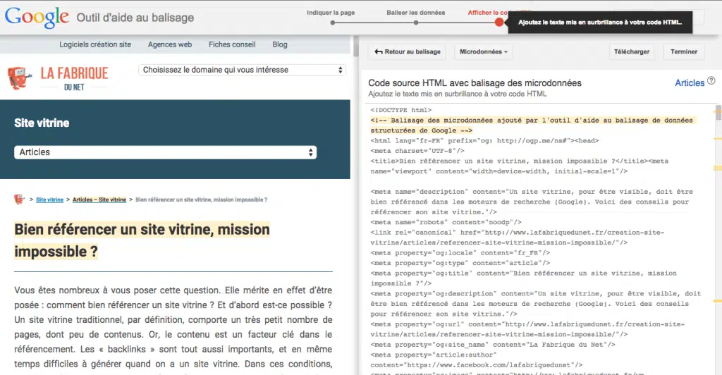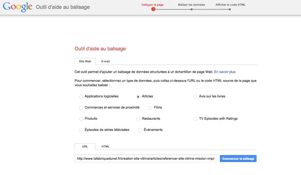2. Mettre en place le balisage sémantique à l’aide de l’outil d’aide de Google