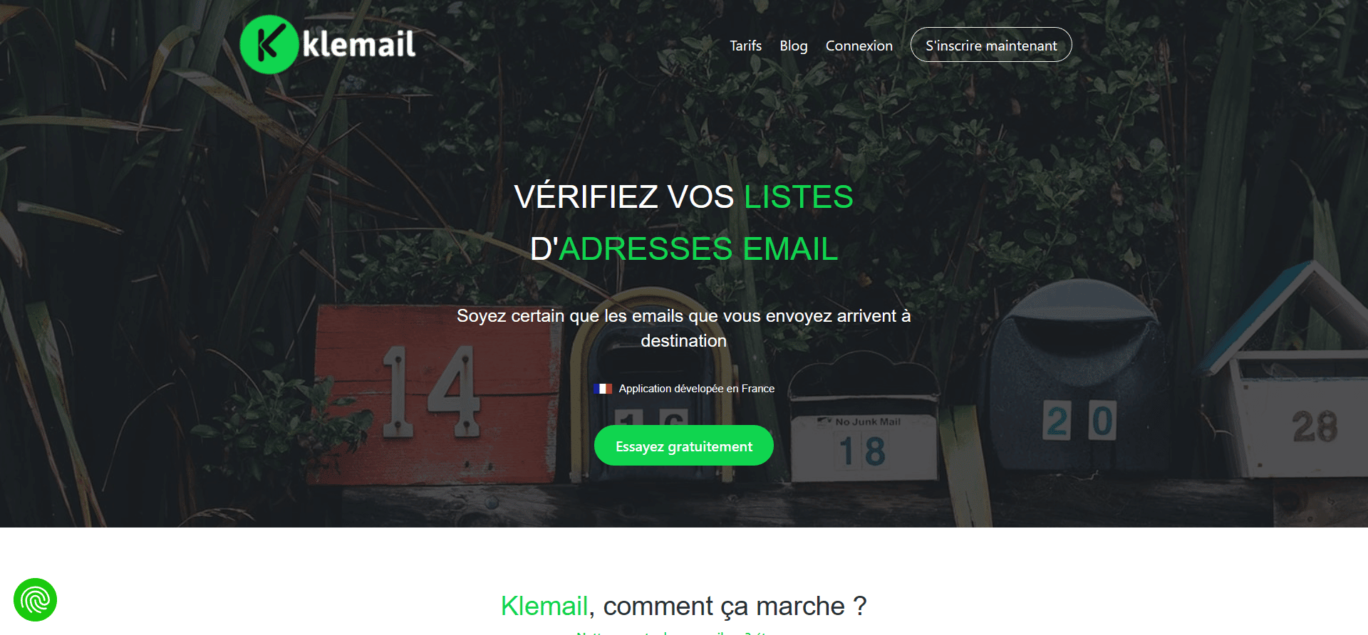 Il existe une offre gratuite, avec toutes les fonctionnalités de Klemail, jusqu’à 150 vérifications. Les tarifs de Klemail sont ensuite liés au nombre de vérifications et sont dégressifs.