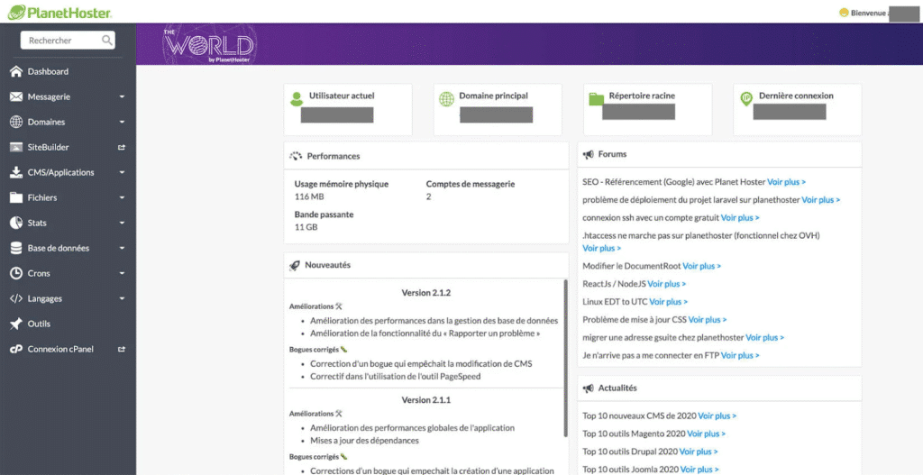 Vous pouvez connecter votre VM à l’offre The World de PlanetHoster pour héberger des sites supplémentaires (zones d’hébergement mutualisé avec ressources garanties). Utile pour des petits projets annexes ou des sites clients.