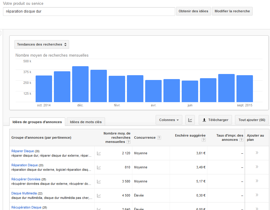 Vous accéderez aux différents mots-clés associés en cliquant sur les groupes d’annonces proposés par Google. Pour compléter les résultats obtenus par Google Keyword Planner, il est recommandé d’utiliser également des outils comme Keyword Tool, Ahrefs, SEMrush ou Ubersuggest. Ces solutions offrent des fonctionnalités avancées pour l’analyse de la difficulté des mots-clés, la recherche de volumes, ou l’exploration de l’intention de recherche. Il est de plus en plus courant de croiser les données de plusieurs outils pour affiner sa stratégie.